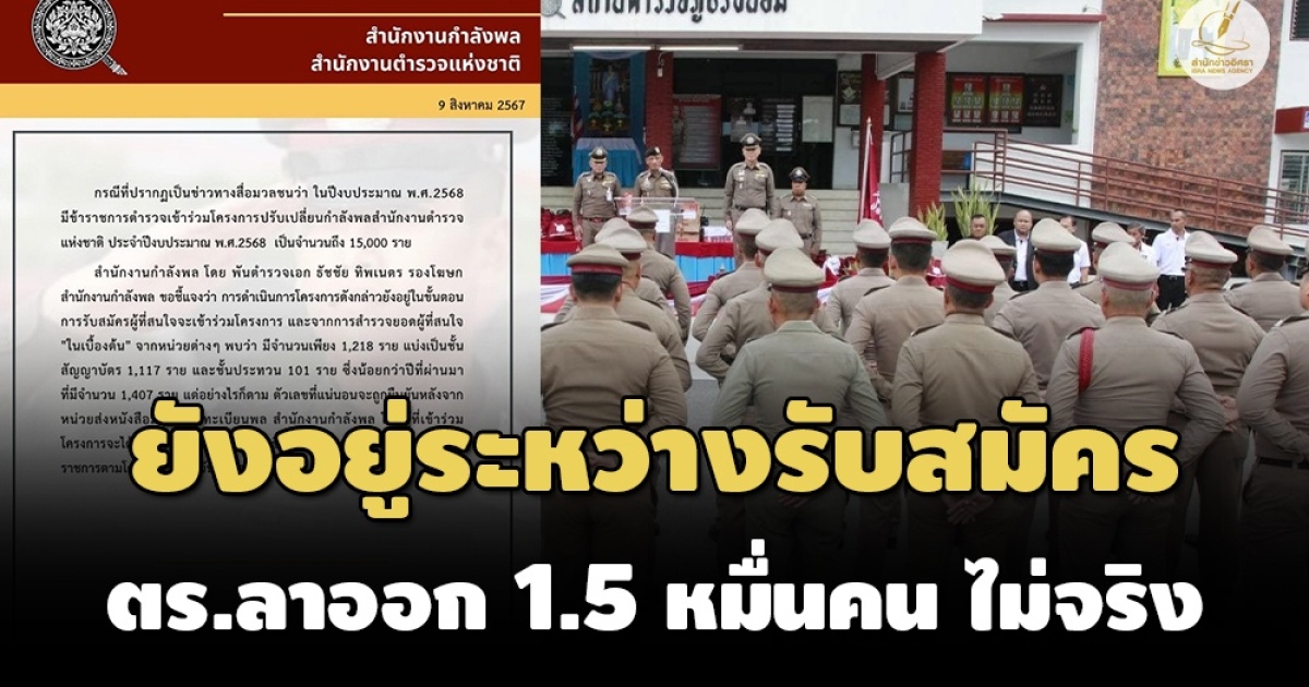 ตร.แจงข่าวยอดขอลาออกปี 67 อยู่ที่ 15,000 คน ชี้ยังอยู่ระหว่างการรับสมัคร มีเพียง 1,218 คนเท่านั้น
