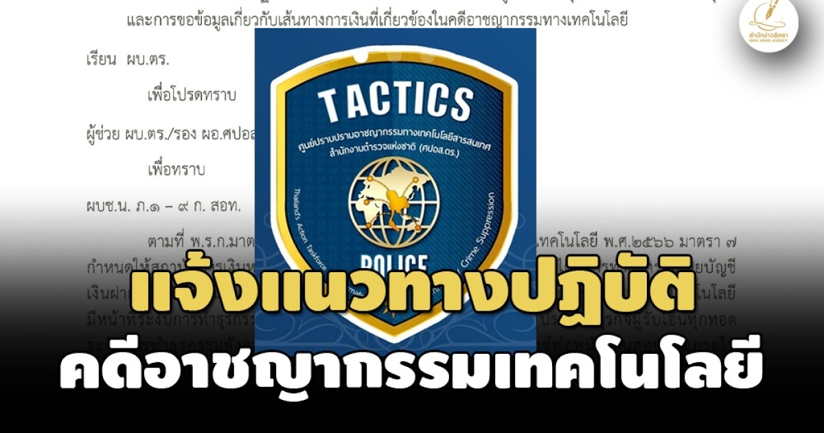 ‘ผอ.ศปอส.ตร.’ แจ้งแนวทาง-วิธีปฏิบัติ เจ้าหน้าที่ศูนย์ AOC-พนักงานสอบสวน‘สถานีตำรวจ’ ประสานงาน ‘สถาบันการเงิน’ ในการดำเนินการคดี ‘อาชญากรรมทางเทคโนโลยี’