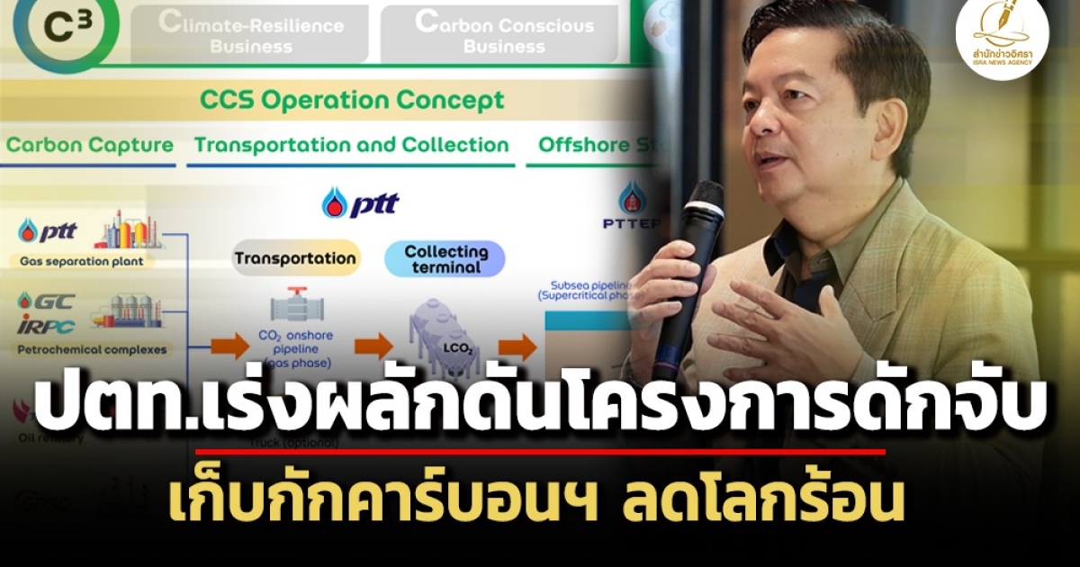 นายคงกระพัน กล่าวว่า ขณะเดียวกัน มีแผนดำเนินโครงการ โครงการดักจับและกักเก็บก๊าซคาร์บอนไดออกไซด์ (Carbon Capture Storage : CCS) โดยทำงานแบบบูรณาการร่วมกันทั้งกลุ่ม ปตท. โดยต้องกำหนดบทบาทหน้าที่ชัดเจน และมีเป้าหมายร่วมกันเพื่อใช้จุดแข็งของแต่ละบริษัท ซึ่งทางปตท. กำลังศึกษาร่วมกับภาครัฐในการแก้ไขกฎหมายต่างๆให้ครอบคลุมทุกมิติโดยคาดว่า ใช้เวลาอีก 2-3 ปี ขณะที่ ปตท. สผ. กำลังทำแซนด์บล็อก โดย จะใช้หลุมก๊าซ ธรรมชาติที่ขุดขึ้นใช้แล้ว เป็นที่เก็บกักคาร์บอน ซึ่งในระยะแรกอาจจะใช้ สำหรับบริษัทในกลุ่มปตท ก่อน และให้บริการกับบริษัทอื่นนอกกลุ่มว่าเป็นไปไม่ได้ที่บริษัทต่างๆทั้งหมดจะสร้างหลุมเก็บกักคาร์บอนฯได้เอง