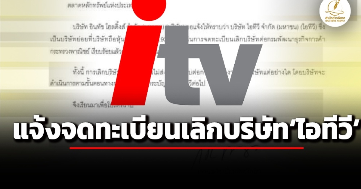 ‘อินทัช โฮลดิ้งส์’ แจ้งจดทะเบียนเลิกบริษัท ‘ไอทีวี’ ต่อ ‘กรมพัฒนาธุรกิจการค้า’ แล้ว พร้อมเผยจะมีการดำเนินการ ‘ชำระบัญชี’ ต่อไป