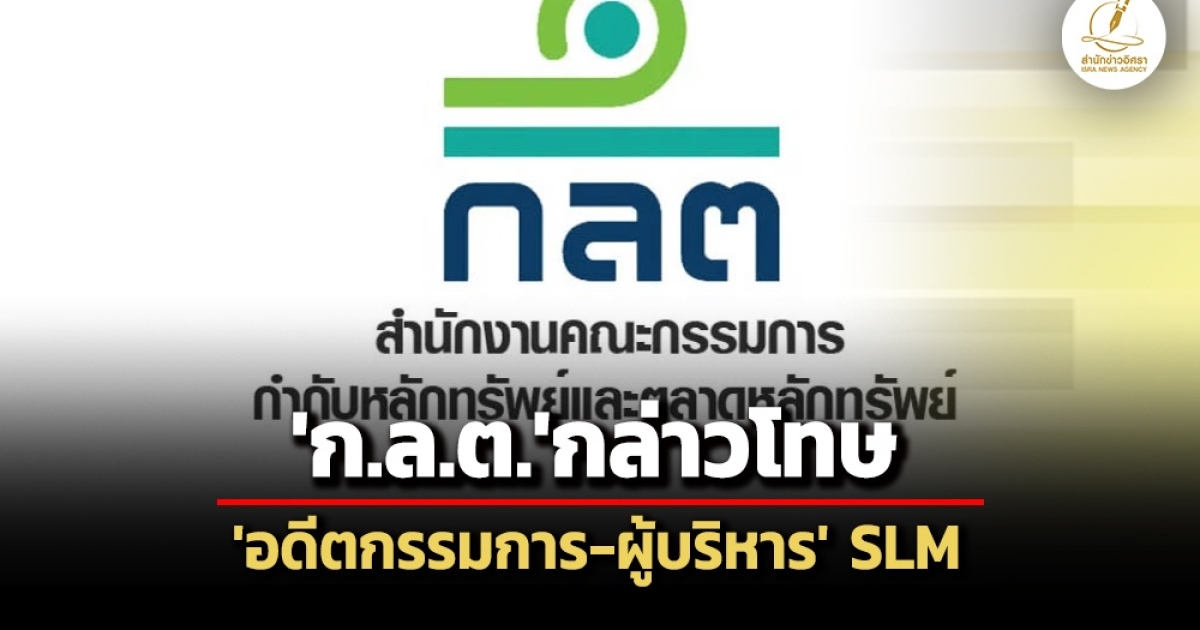 ก.ล.ต. กล่าวโทษ ‘อดีตกรรมการ-ผู้บริหาร’ SLM ต่อ DSI ฐานร่วมกันกระทำทุจริตผ่านธุรกรรมต้องสงสัย 5 รายการ ทำบริษัทฯเสียหาย 110 ล้าน พร้อมส่งเรื่องให้ ‘ปปง.’ ดำเนินการ