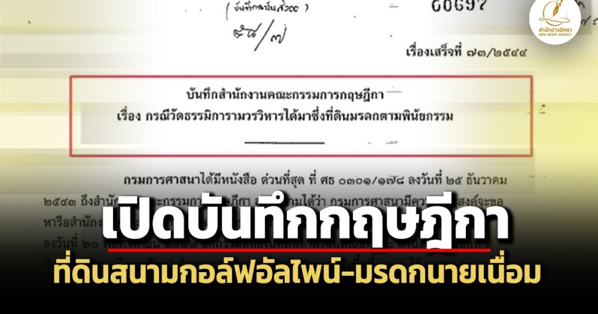สมชาย แสวงการ อดีต สว. ส่ง จดหมายเปิดผนึกถึงนายกรัฐมนตรี โอนที่ดินสนามกอล์ฟอัลไพน์คืนวัดธรรมิการาม แนบบันทึกที่ประชุมใหญ่คณะกรรมการกฤษฎีกา ชี้ ที่ดินสนามกอล์ฟอัลไพน์ตกเป็นของวัดธรรมิการามฯ แล้วตั้งแต่ยายเนื่อมตาย มูลนิธิมหามกุฎราชวิทยาลัย ฯ ไม่ใช่ผู้รับโอนกรรมสิทธิ์ในที่ดินต่อจากวัด-ผู้จัดการมรดกจัดการนอกเหนือคำสั่งในพินัยกรรมไม่ได้