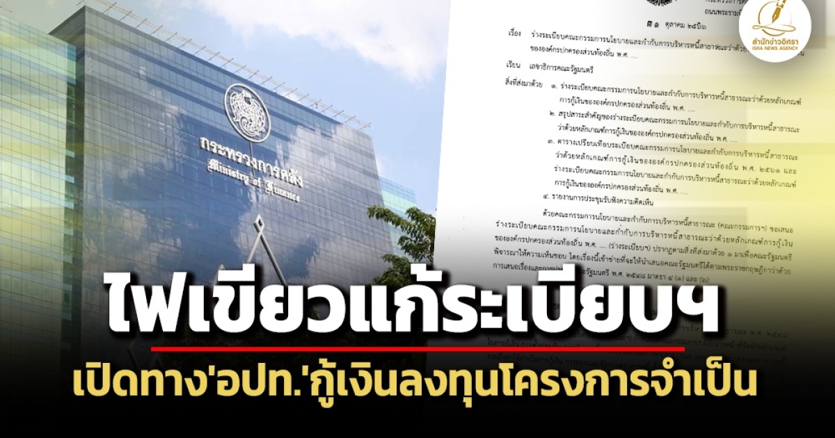 สำนักข่าวอิศรา (www.isranews.org) รายงานว่า ในการประชุมคณะรัฐมนตรี (ครม.) เมื่อวันที่ 8 ต.ค.ที่ผ่านมา ครม.มีมติเห็นชอบในหลักการร่างระเบียบคณะกรรมการนโยบายและกำกับการบริหารหนี้สาธารณะว่าด้วยหลักเกณฑ์ การกู้เงินขององค์กรปกครองส่วนท้องถิ่น พ.ศ. .... ตามที่คณะกรรมการนโยบายและกำกับการบริหารหนี้สาธารณะ (คนน.) เสนอ และให้ส่งคณะกรรมการตรวจสอบร่างกฎหมายและร่างอนุบัญญัติที่เสนอคณะรัฐมนตรี ตรวจพิจารณาตรวจพิจารณาแล้วดำเนินการต่อไปได้