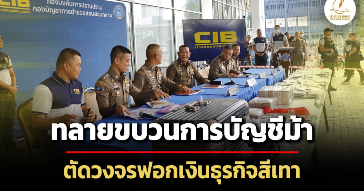 ตำรวจสอบสวนกลาง ปฏิบัติการ 'ขยี้ดวงใจทศกัณฐ์' ทลายขบวนการจัดหาบัญชีม้า ตัดเส้นทางฟอกเงินธุรกิจสีเทา ยึดเงินสด 31 ล. อายัด 25 ล้านบาท