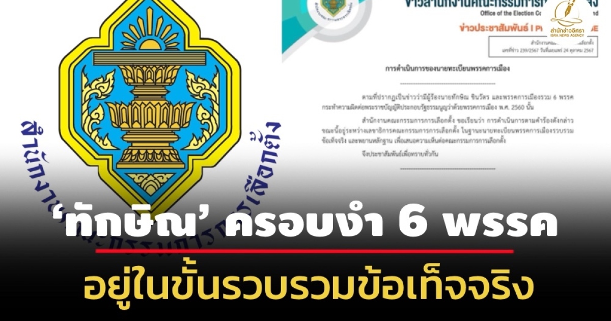 สำนักงาน กกต.แจงข่าวปมร้อง ‘ทักษิณ ชินวัตร’ ครอบงำ 6 พรรค ตอนนี้อยู่ในขั้นนายทะเบียนรวบรวมข้อเท็จจริง พยานหลักฐาน ก่อนชงความเห็นคณะกรรมการการเลือกตั้ง