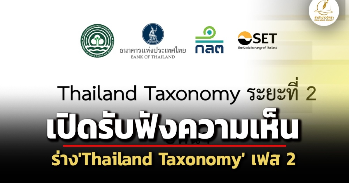 กรมการเปลี่ยนแปลงสภาพภูมิอากาศและสิ่งแวดล้อม ธนาคารแห่งประเทศไทย สำนักงานคณะกรรมการกำกับหลักทรัพย์และตลาดหลักทรัพย์ และตลาดหลักทรัพย์แห่งประเทศไทย ในฐานะคณะทำงานหลักฯ จึงขอเชิญผู้ที่เกี่ยวข้องและผู้ที่สนใจ ร่วมให้ความเห็นและข้อเสนอแนะต่อร่าง Thailand Taxonomy ระยะที่ 2 โดยสามารถศึกษารายละเอียดร่าง Thailand Taxonomy ระยะที่ 2 ได้ผ่าน link และให้ความเห็นผ่าน link ได้ตั้งแต่วันที่ 28 ต.ค.2567 ถึง 10 ม.ค.2568
