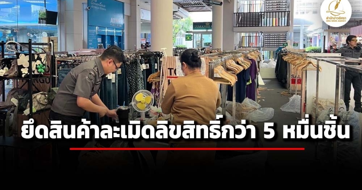 DSI สนธิกำลังค้น 5 ร้านใหญ่ทั่วกรุงเทพ พบสินค้าละเมิดลิขสิทธิ์มากกว่า 5 หมื่นชิ้น ก๊อปปี้หลายแบรนด์ดัง ส่อผิดกฎหมายเครื่องหมายการค้า เตรียมยึดใช้เป็นหลักฐานดำเนินคดี