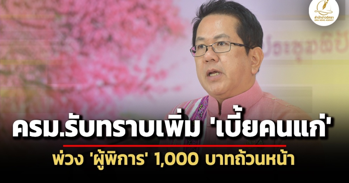 ครม.สัญจร เชียงใหม่ รับทราบ เพิ่มเบี้ยผู้สูงอายุ เป็นขั้นบันได สูงสุดอายุ 90 ปีขึ้นไป จากเดิมเดือนละ 1,000 บาท เป็นเดือนละ 1,250 บาท - เพิ่มเบี้ยคนพิการ เดือนละ 1,000 บาท และให้นำกลับมาเข้าครม.อีกครั้ง