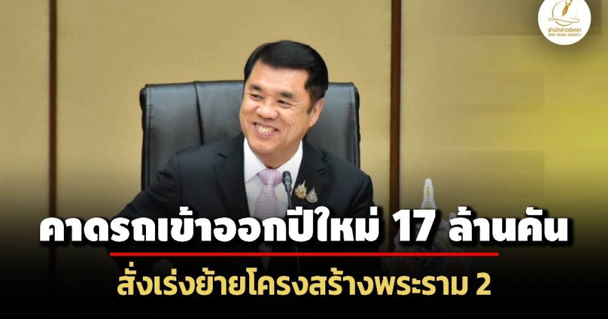 คมนาคม กางแผนรับมือช่วงปีใหม่ คาดการณ์ปริมาณรถไหลเวียนเข้า-ออกกว่า 17 ล้านคัน ส่วนปัญหาถนนพระราม 2 สั่งการผู้รับเหมาหยุดก่อสร้าง พร้อมกำชับให้เร่งเคลื่อนย้ายโครงสร้างสะพานและชิ้นส่วนที่ได้รับความเสียหายภายใน 2 สัปดาห์