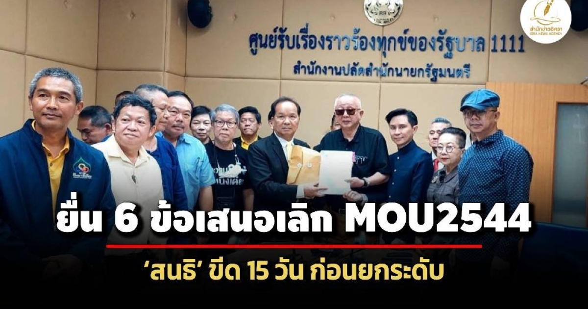 ‘สนธิ’ นำทีมบุกศูนย์ร้องเรียน ทำเนียบฯ ยื่น 6 ข้อเรียกร้องเลิก MOU 2544 ก่อนขีดเส้น 15 วัน ถ้าไม่ทำตามจ่อยกระดับมาตรการต่อไป
