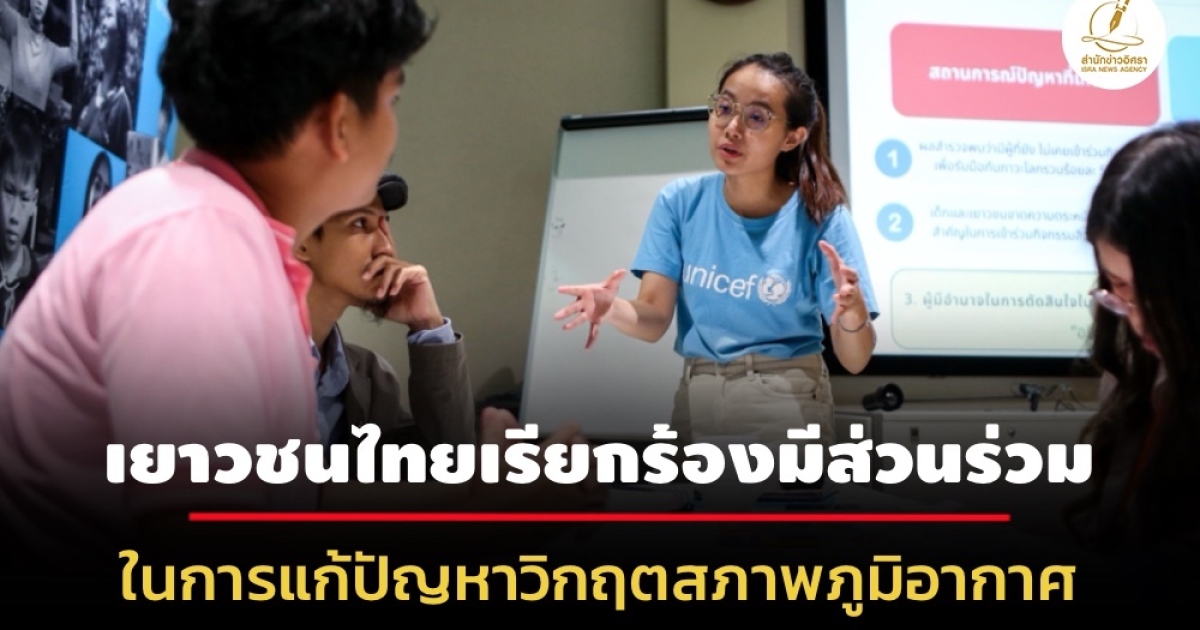 ยูนิเซฟเผย เยาวชนไทยยื่นข้อเสนอต่อรัฐบาล เรียกร้องการมีส่วนร่วมในการแก้ปัญหาวิกฤตสภาพภูมิอากาศ ชี้เยาวชน 93% ได้รับผลกระทบ แต่ส่วนใหญ่ยังขาดการมีส่วนร่วมในการแก้ปัญหา