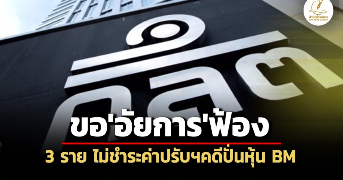 ก.ล.ต. ยื่นหนังสือถึง ‘พนักงานอัยการ’ ฟ้องคดีผู้กระทำ 3 ราย ต่อ ‘ศาลแพ่ง’ หลังไม่ปฏิบัติตามมาตรการลงโทษทางแพ่ง เรียกชำระเงิน 7.2 ล้าน คดีสร้างราคาหุ้น BM