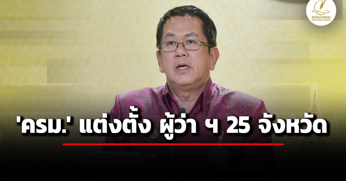 คณะรัฐมนตรี มีมติแต่งตั้ง ผู้ว่าราชการจังหวัด 25 จังหวัด 'อโรชา นันทมนตรี' ผู้ว่าราชการจังหวัดนครปฐม - 'ปิยะ ปิจนำ' ผู้ว่าราชการจังหวัดบุรีรัมย์ - 'สุวรา ทวิชศรี' ผู้ว่าการการประปานครหลวง - 'อภิรัฐ ไชยวงศ์น้อย' ประธานคณะกรรมการการทางพิเศษแห่งประเทศไทย
