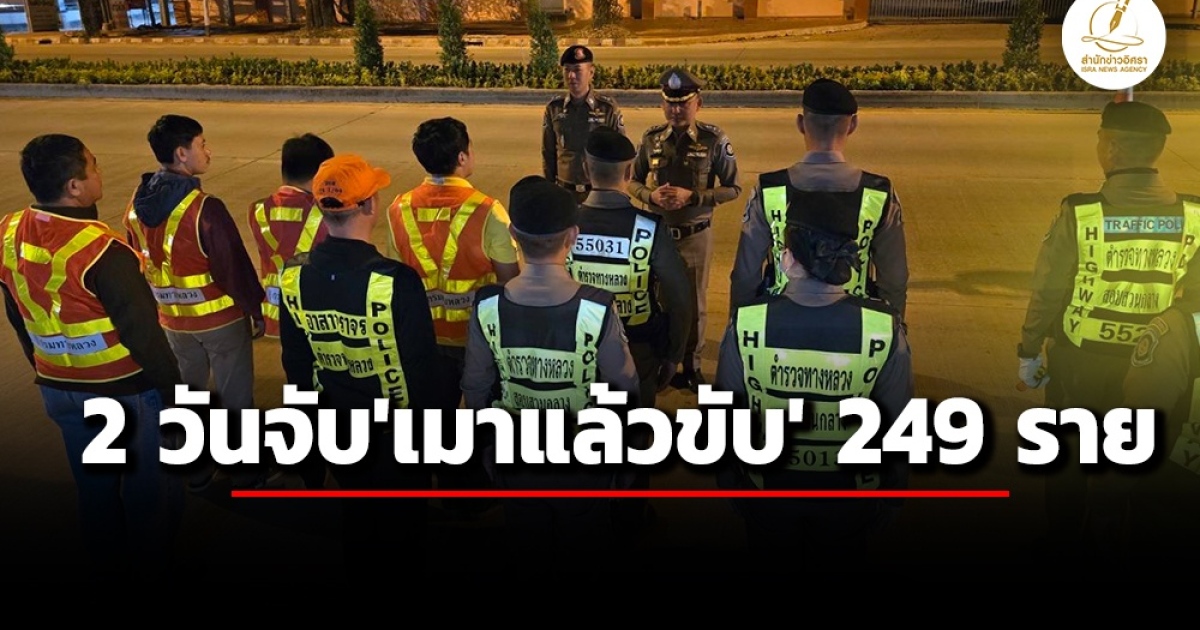 เมื่อวันที่ 29 ธ.ค. กองบัญชาการตำรวจสอบสวนกลาง (บช.ก.) เผยแพร่ข้อมูลการปฏิบัติหน้าที่กวดขันวินัยจราจร และอำนวยความสะดวกให้กับพี่น้องประชาชนที่เดินทางกลับภูมิลำเนาในข่วงเทศกาลปีใหม่ ของกองบังคับการตำรวจทางหลวง (บก.ทล.) โดยผลการปฏิบัติหน้าที่ในช่วง 2 วันที่ผ่านมา เบื้องต้นมีการบังคับใช้กฎหมายเพื่อป้องกันอุบัติเหตุกับผู้ที่เมาแล้วขับรถ ซึ่งเป็นสาเหตุหลักของอุบัติเหตุ จำนวน 249 ราย