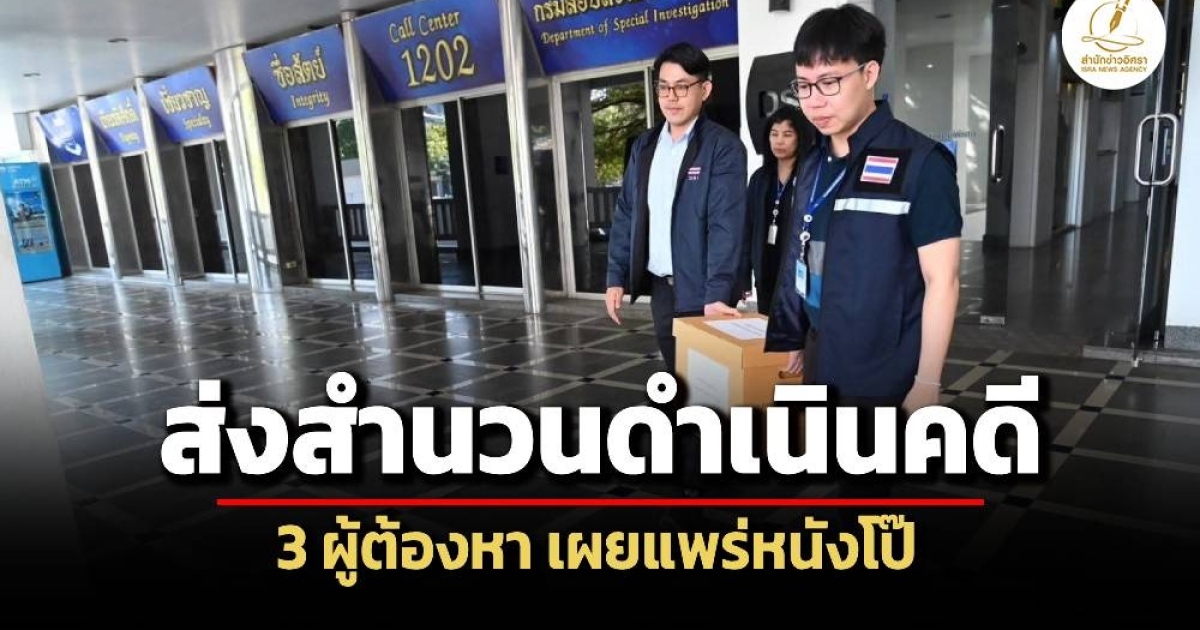 ‘ดีเอสไอ’ ส่งสำนวนถึงพนักงานอัยการฯ สั่งฟ้อง 3 ผู้ต้องหาฐานเผยแพร่สื่อลามกอนาจารผ่านช่องทางออนไลน์ เผยยังหลบหนีอีก 1 คน