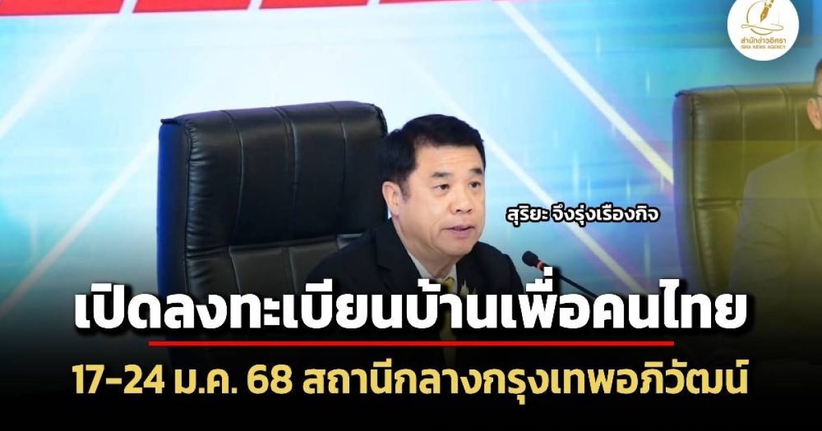 ‘คมนาคม’ เตรียมเปิดตัวโครงการบ้านเพื่อคนไทย อย่างเป็นทางการ 17 ม.ค.นี้ เชิญ ‘แพทองธาร’ ประธานเปิด พร้อมให้ลงทะเบียนจองสิทธิ 17 - 24 ม.ค.นี้ และทางเว็บไซต์จนกว่าจะปิด