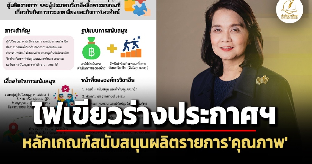 สำหรับร่างประกาศฯ หลักเกณฑ์การสนับสนุนรายการที่เป็นประโยชน์ต่อสังคมฯ จะเน้นการสนับสนุนการผลิตและเผยแพร่เนื้อหารายการสำหรับเด็กและเยาวชน รายการที่มีเนื้อหาส่งเสริมเอกลักษณ์ของความเป็นท้องถิ่น รายการที่มีเนื้อหาส่งเสริมความหลากหลายของสังคม และรายการที่มีศักยภาพในการร่วมผลิตกับต่างประเทศ