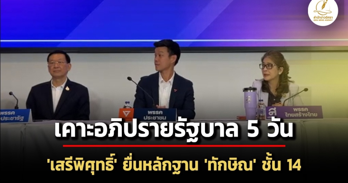 พรรคร่วมฝ่ายค้านสรุปกรอบอภิปรายไม่ไว้วางใจ 5 วัน ยื่นไม่เกิน 27 ก.พ.นี้ มอบ 'ปกรณ์วุฒิ' หารือวิปรัฐบาลสรุปวันเวลา ด้านเสรีพิศุทธิ์ยื่นหลักฐานชั้น 14 ทักษิณให้