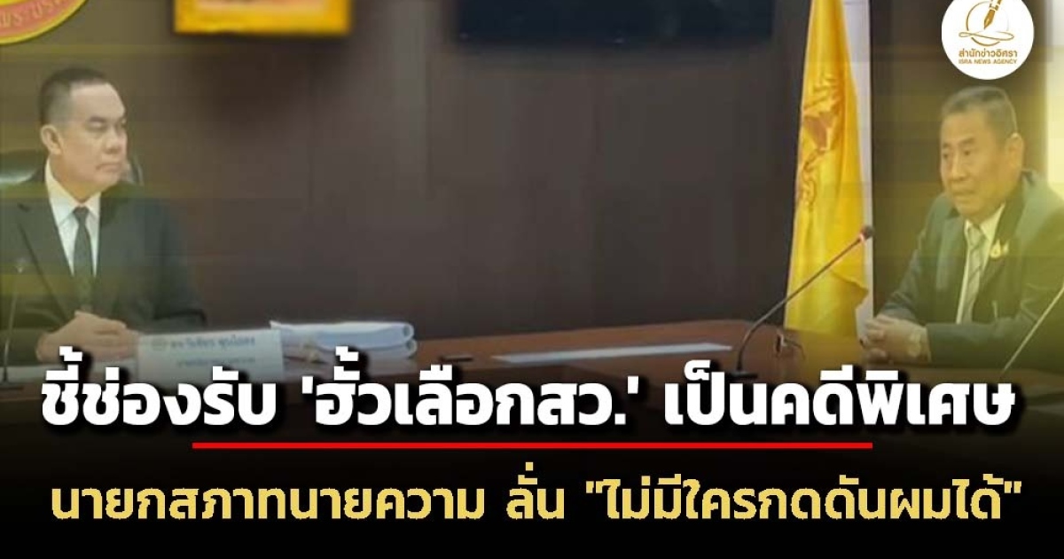 ณฐพร โตประยูร บุก สภาทนายความ ยื่นหนังสือถึง วิเชียร ชุบไธสง นายกสภาทนายความ รับ ‘คดีฮั้วเลือกสว.’ เป็นคดีพิเศษ วิเชียร เผยช่องกฎหมาย พ.ร.บ.คดีพิเศษ มาตรา 21 อนุสอง รับเป็นคดีพิเศษ ลั่น “ไม่มีใครมากดดันผมได้ ผมทำอะไรตรงไปตรงมา”