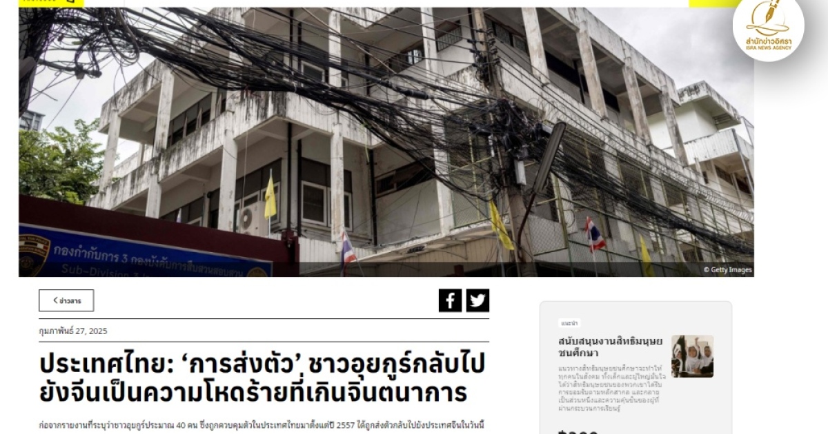 สำนักข่าวอิศรา (www.isranews.org) รายงานว่าเมื่อวันที่ 27 ก.พ. องค์กรแอมเนสตี้ อินเตอร์เนชั่นแนล ได้ออกแถลงการณ์ต่อกรณีที่ชาวอุยกูร์ประมาณ 40 คน ซึ่งถูกควบคุมตัวในประเทศไทยมาตั้งแต่ปี 2557 ได้ถูกส่งตัวกลับไปยังประเทศจีนในวันนี้ (27 ก.พ.) โดยแถลงการณ์ระบุว่า นางซาราห์ บรูคส์ ผู้อำนวยการแอมเนสตี้ อินเตอร์เนชั่นแนล ประจำประเทศจีน เผยว่า การบังคับส่งตัวบุคคลเหล่านี้กลับไปยังจีน หรือชาวอุยกูร์คนใดก็ตาม เสี่ยงทำให้พวกเขาตกอยู่ในภาวะถูกละเมิดสิทธิมนุษยชนอย่างร้ายแรง เราขอเรียกร้องให้รัฐบาลไทยชี้แจงสถานะของพวกเขาโดยทันที