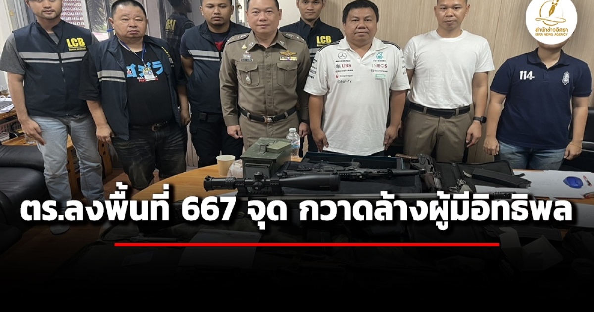 สำนักข่าวอิศรา (www.isranews.org) รายงานว่าเมื่อวันที่ 21 มี.ค. ที่ อาคารประชาอารักษ์ กองบังคับการปราบปราม (บก.ป.) พล.ต.ท.อัคราเดช พิมลศรี ผู้ช่วย ผบ.ตร. พร้อม ตัวแทนจากกองบัญชาการตำรวจสอบสวนกลาง (บช.ก.) กองบัญชาการตำรวจนครบาล (บช.น.) กองบัญชาการตำรวจภูธร ภาค 1-9 และหน่วยงานต่างๆ ที่เกี่ยวข้องร่วมแถลงผลยุทธการ “ธรณีนี้มีขื่อมีแป 21MARCH2025” หลังนำกำลังเจ้าหน้าที่รวมกว่า 4,000 นาย กระจายเข้าตรวจค้นพื้นที่เป้าหมาย 667 จุด ทั่วประเทศ เพื่อกวาดล้างแก๊งอาชญากรรม และ ปราบปรามอิทธิพลเถื่อน