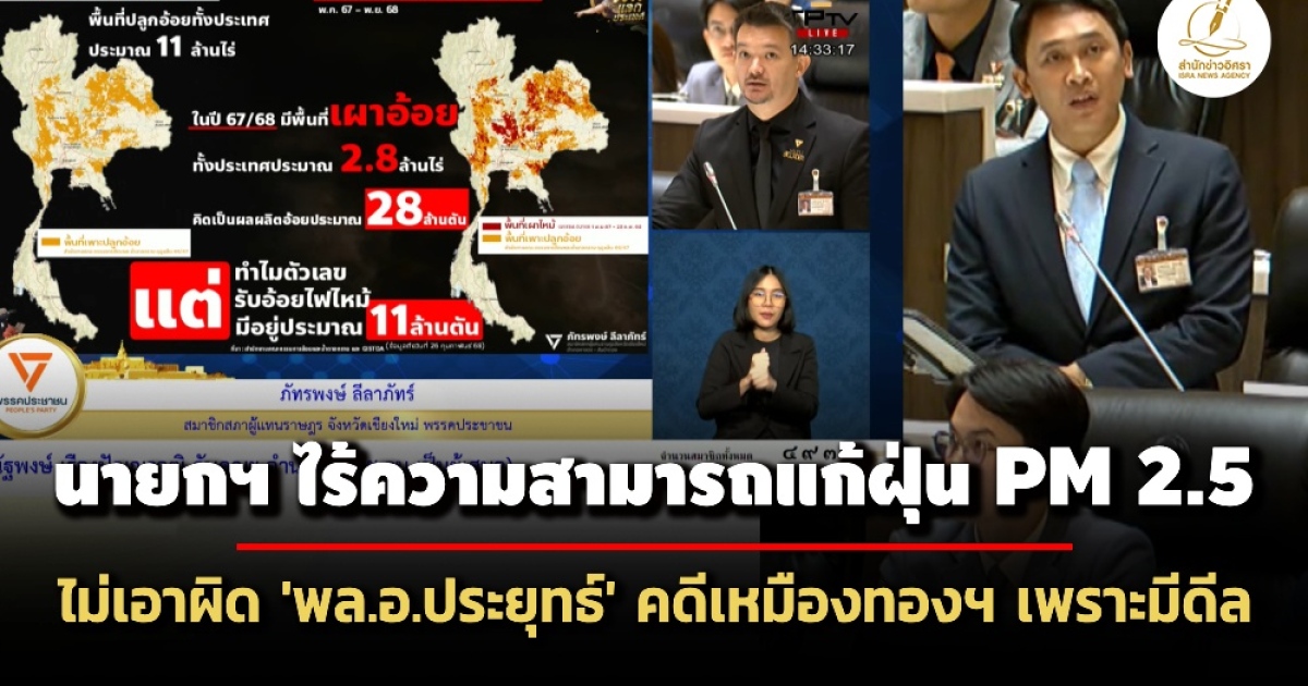 'อิทธิพล ชนธราศิริ-ภัทรพงษ์ ลีลาภัทร์' สส. พรรคประชาชน จวก 'แพทองธาร' ไร้ความสามารถแก้ปัญหาฝุ่น PM 2.5-ไม่เอาผิด 'พล.อ.ประยุทธ์' เพราะมีดีล