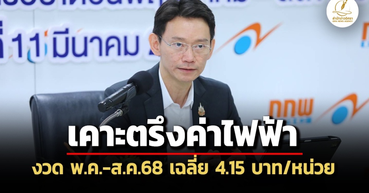 ‘กกพ.’ มีมติตรึง ‘ค่าเอฟที’ งวดเดือน พ.ค.-ส.ค.2568 คงเดิมที่ 36.72 สตางค์/หน่วย ส่งผลให้ 'ค่าไฟฟ้า' เฉลี่ยอยู่ที่ 4.15 บาท/หน่วย