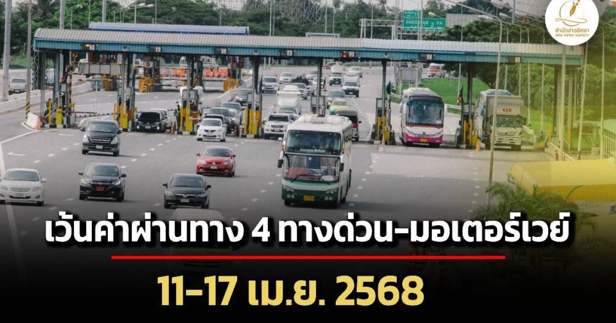 ครม.รับทราบเว้นค่าผ่านทาง 4 ทางด่วน-มอเตอร์เวย์ ‘บูรพาวิถี-กาญจนาฯบางพลีสุขสวัสดิ์-มอเตอร์เวย์สาย 7 และสาย 9’ ช่วงเทศกาลสงกรานต์ระหว่างวันที่ 11-17 เม.ย.นี้