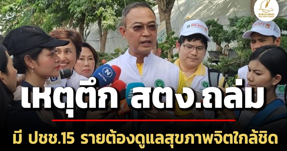 กรมสุขภาพจิตเผยเหตุตึก สตง.ถล่มมีประชาชนต้องได้รับการดูแลอย่างใกล้ชิด 15 ราย จาก ผู้รับผลกระทบ 200 ราย พบมีเจ้าหน้าที่มีความเครียดสูงอย่างน้อย 2 รายต้องให้พักงาน