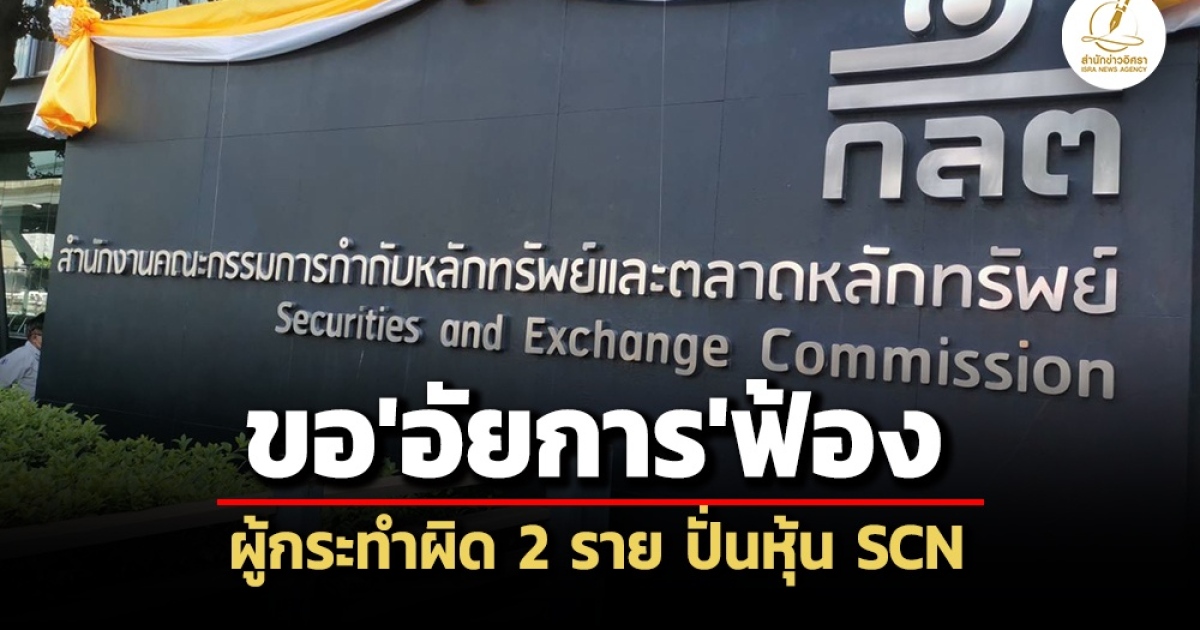 ‘ก.ล.ต.’ ขอ ‘อัยการ’ ฟ้องผู้กระทำผิด 2 ราย ต่อ‘ศาลแพ่ง’ กรณีสร้างราคาหุ้น SCN หลังไม่ยอมมาชำระค่าปรับตาม 'มาตรการลงโทษทางแพ่ง' รวม 10.5 ล้าน