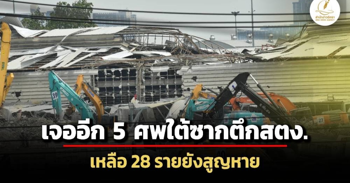 กทม.เผยความคืบหน้าการรื้อซากตึกสตง. พบศพผู้เสียชีวิตอีก 5 คน รวมเสียชีวิตแล้ว 66 ราย และยังสูญหายอีก 28 คน คาดอีก 2 สัปดาห์จะเสร็จสิ้นลงในอีก 2 สัปดาห์ข้างหน้า
