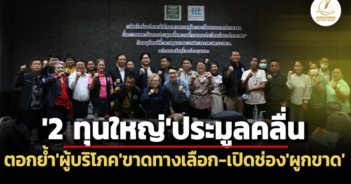 เวทีเสวนาฯ ชี้ มีเพียง 2 กลุ่มทุนใหญ่ AIS-TRUE เข้าร่วมเปิดประมูล ‘คลื่นมือถือ’ ตอกย้ำ ‘ผู้บริโภค’ ขาดทางเลือก-เปิดช่องเกิดการ ‘ผูกขาด’