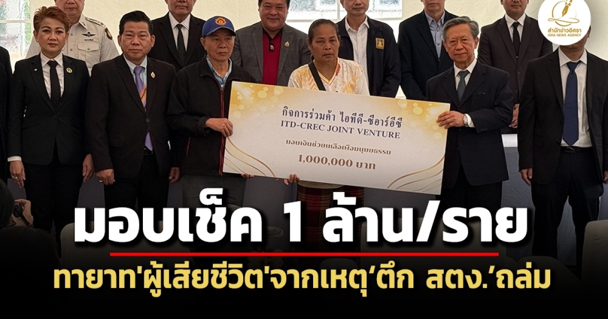 ‘รมว.ยุติธรรม’ เป็นประธานพิธีฯ รับมอบเช็ค 1 ล้านบาท ให้ทายาทผู้เสียชีวิต จากเหตุ ‘ตึก สตง.’ ถล่ม จำนวน 40 ราย เป็นเงิน 40 ล้านบาท ขณะที่ ‘ทนายความ’ กิจการร่วมค้า ITD-CREC ยัน ‘ไชน่า เรลเวย์ฯ’ ไม่มีการใช้ ‘นอมินี’