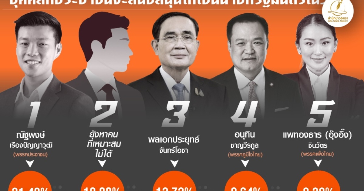 จากการสำรวจเมื่อถามถึงบุคคลที่ประชาชนจะสนับสนุนให้เป็นนายกรัฐมนตรีในวันนี้ พบว่า