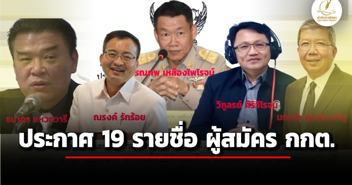 ปัณณิตา สท้านไตรภพ เลขาธิการวุฒิสภา-เลขานุการคณะกรรมการสรรหากรรมการการเลือกตั้ง ประกาศ 19 รายชื่อ ผู้สมัครเข้ารับการสรรหา กรรมการ กกต. แทน 2 ตำแหน่งที่ว่าง อดีตปลัดกระทรวงเกษตรฯ – อดีตอธิบดีกรมโยธาธิการฯ - อดีตผู้ว่าราชการจังหวัด – ทนายความ เข้ารับการสรรหา