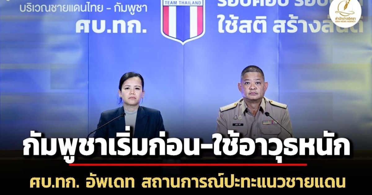 ศูนย์เฉพาะกิจบริหารสถานการณ์ชายแดนไทย-กัมพูชา แถลงความคืบหน้าสถานการณ์ชายแดน-กัมพูชาเปิดฉากยิง ใช้อาวุธหนัก BM 21-ปืนใหญ่ 122 มิลลิเมตร ถล่มใส่ศูนย์พัฒนาพื้นที่ชายแดนฯ-โรงพยาบาล ภูมิธรรม เวชยชัย รองนายกฯ-รักษาการแทนนายกฯ ถก สภาความมั่นคงแห่งชาติ วางแนวทาง