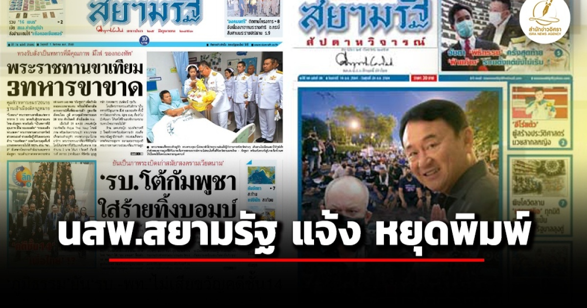 2. หนังสือสยามรัฐสัปดาหวิจารณ์ จะผลิตฉบับวันเสาร์ที่ 30 สิงหาคม 2568 เป็นฉบับสุดท้าย