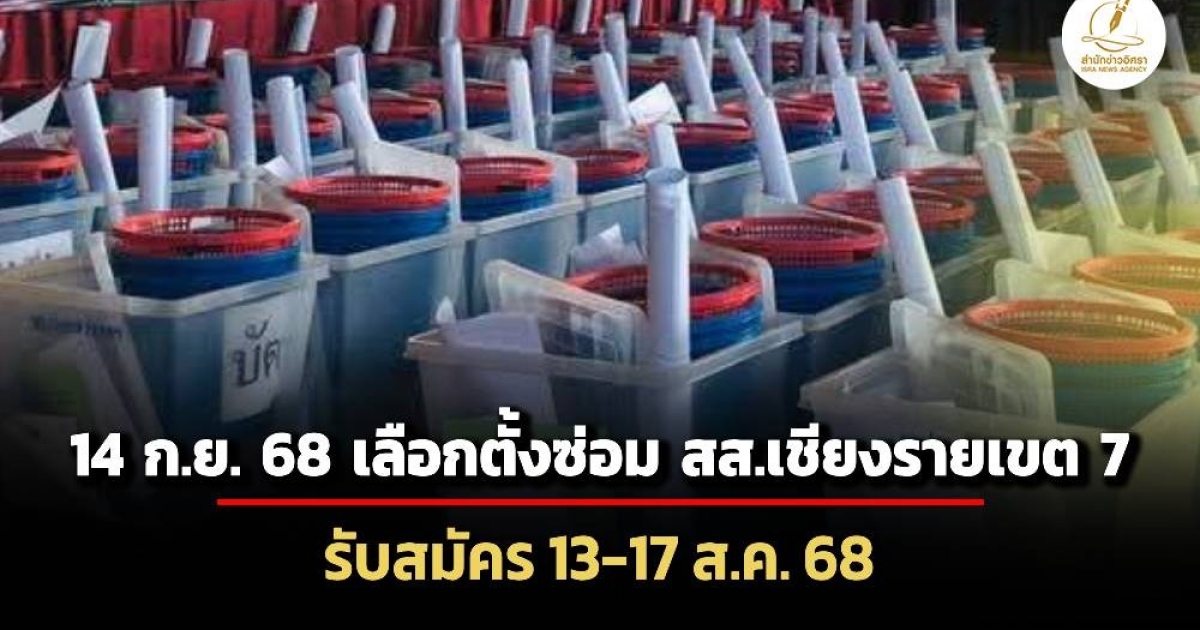 สำนักข่าวอิศรา (www.isranews.org) รายงานว่า วันที่ 8 ส.ค. 2568 ราชกิจจานุเบกษา เผยแพร่ประกาศ คณะกรรมการการเลือกตั้ง เรื่อง กำหนดวันเลือกตั้งและวันรับสมัครรับเลือกตั้งสมาชิกสภาผู้แทนราษฎรจังหวัดเชียงรายเขตเลือกตั้งที่ 7 แทนตำแหน่งที่ว่าง มีเนื้อหาดังนี้