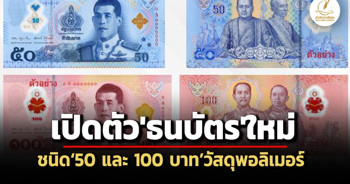‘ธปท.’ เตรียมออกใช้ ‘ธนบัตร’ชนิดราคา ‘50 บาท และ 100 บาท’ พิมพ์ด้วย ‘วัสดุพอลิเมอร์’ 21 พ.ย.นี้ เผยอายุการใช้งานนานกว่า ‘ธนบัตรกระดาษ’ 4 เท่า