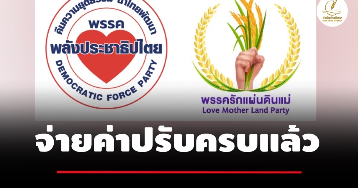 กกต.เผย 2 พรรคการเมือง 'พลังประชาธิปไตย-รักแผ่นดินแม่' จ่ายค่าปรับกรณีใช้เงินอุดหนุนไม่เป็นไปตามกม.ครบแล้ว
