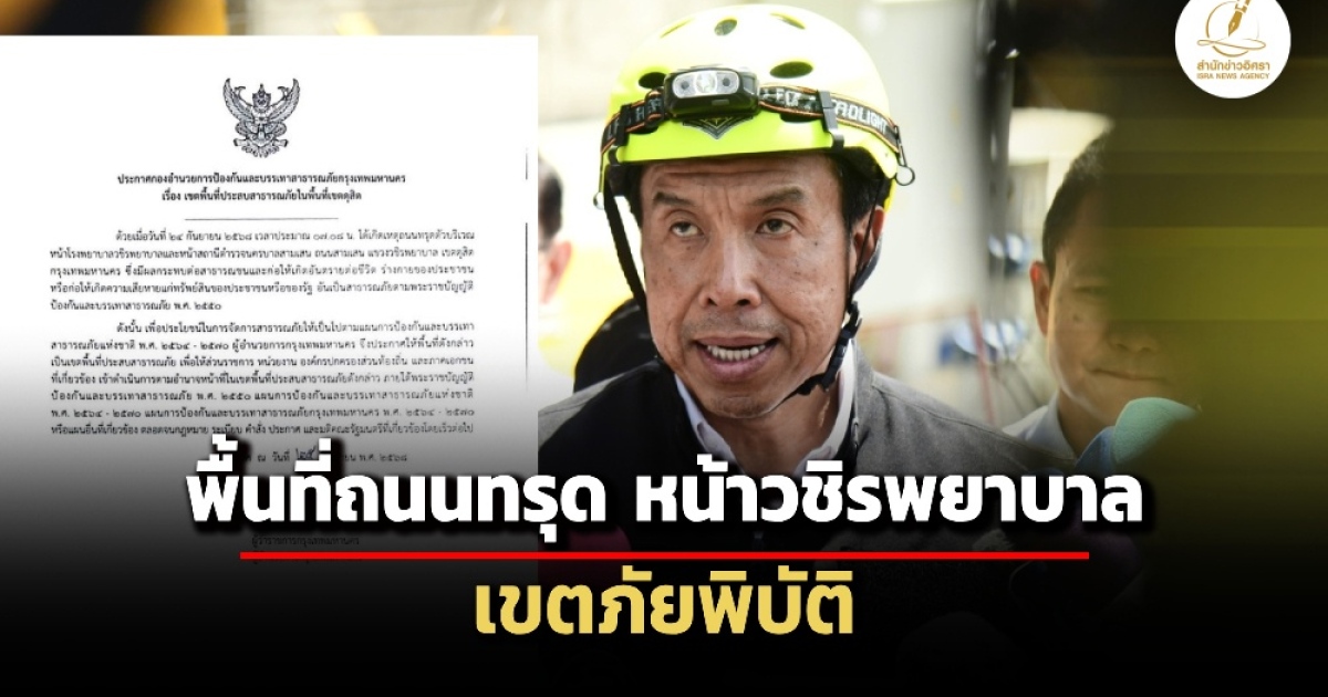 ด้วยเมื่อวันที่ 24 กันยายน 2568 เวลาประมาณ 07.08 น.ได้เกิดเหตุถนนทรุดตัวบริเวณหน้าโรงพยาบาลวชิรพยาบาลและหน้าสถานีตำรวจนครบาลสามเสน ถนนสามเสน แขวงวชิรพยาบาล เขตดุสิต กรุงเทพมหานคร ซึ่งมีผลกระทบต่อสาธารณชนและก่อให้เกิดอันตรายต่อชีวิต ร่างกายของประชาชน หรือก่อให้เกิดความเสียหายแก่ทรัพย์สินของประชาชนหรือของรัฐ อันเป็นสาธารณภัยตามพระราชบัญญัติป้องกันและบรรเทาสาธารณภัย พ.ศ. 2550