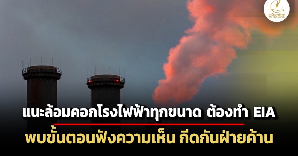 กสม.แนะสผ.แก้ระเบียบให้ทุกโรงไฟฟ้าไม่ว่าจะเล็กกลางใหญ่ต้องทำรายงาน EIA หลังพบกฎหมายไม่ได้บังคับให้โรงไฟฟ้าขนาดเล็กต้องมี หลังชาวบ้านร้องเรียน 7 โรงไฟฟ้าปิดกั้นการแสดงความเห็น เผยขั้นตอนการทำรายงานประมวลหลักการปฏิบัติ (Code of Practice: CoP) ยังพบการกีดกันฝ่ายค้านไม่ให้ฟังความเห็น