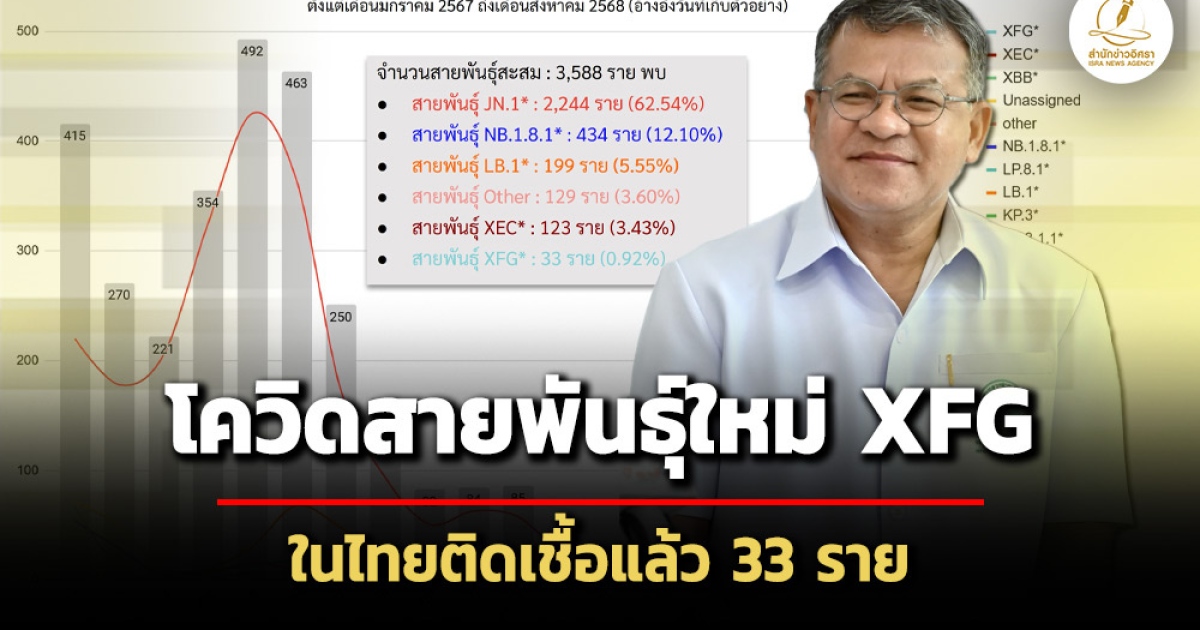 สำนักข่าวอิศรา (www.isranews.org) รายงานว่า วันที่ 30 กันยายน 2568 นพ.ยงยศ ธรรมวุฒิ อธิบดีกรมวิทยาศาสตร์การแพทย์ กระทรวงสาธารณสุข เปิดเผยความคืบหน้าสถานการณ์โควิด 19 พบว่า สายพันธุ์ “XFG” หรือที่เรียกว่า สเตรตัส (Stratus) กำลังกลายเป็นสายพันธุ์หลักที่แพร่ระบาดทั่วโลก โดยมีแนวโน้มเพิ่มขึ้นอย่างต่อเนื่อง แม้ยังไม่มีหลักฐานยืนยันว่าทำให้ผู้ป่วยมีอาการรุนแรงมากกว่าสายพันธุ์อื่น