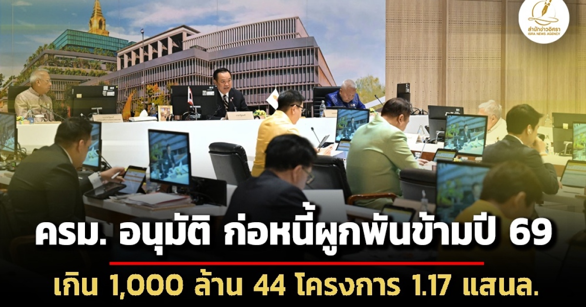 คณะรัฐมนตรี มีมติอนุมัติก่อหนี้ผูกพันข้ามปีงบประมาณ ฯ 2569 จำนวน 1,917 รายการ รวม 349,656 ล้านบาท - รายการที่มีวงเงินรวมตั้งแต่ 1,000 ล้านบาทขึ้นไป 44 รายการ 117,700 ล้านบาท
