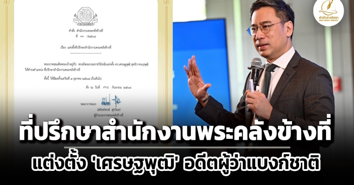 สำนักข่าวอิศรา (www.isranews.org) รายงานว่า เมื่อวันที่ 30 กันยายน 2568 พล.อ.อ.สถิตย์พงษ์ สุขวิมล ผู้อำนวยการพระคลังข้างที่ ลงนามในคำสั่ง สำนักงานพระคลังข้างที่ ที่ 31/2568 เรื่อง แต่งตั้งที่ปรึกษาสำนักงานพระคลังข้างที่ พระบาทสมเด็จพระเจ้าอยู่หัว ทรงมีพระบรมราชวินิจฉัยแต่งตั้ง นายเศรษฐพุฒิ สุทธิวาทนฤพุฒิ อดีตผู้ว่าการธนาคารแห่งประเทศไทย (ธปท.) ให้ดำรงตำแหน่ง ที่ปรึกษาสำนักงานพระคลังข้างที่