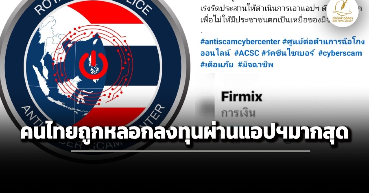 ศูนย์ต่อต้านการฉ้อโกงออนไลน์ เตือนภัยปี 2568 คนไทยถูกหลอกลงทุนผ่านแอปพลิเคชันมากสุด -เสียหายกว่า 6.3 พันล.