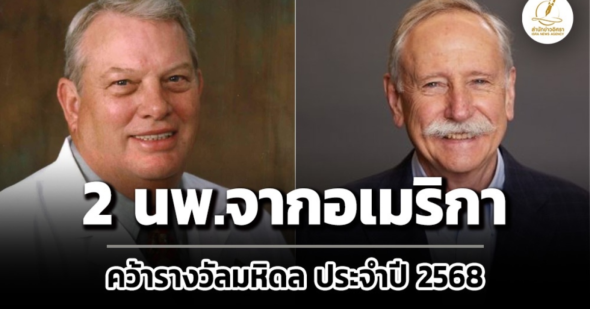 2 นายแพทย์จากสหรัฐอเมริกา คว้ารางวัลสมเด็จเจ้าฟ้ามหิดลครั้งที่ 34 ประจำปี 2568 'นพ.เทอร์รี ดีน คิง' สาขาการแพทย์ - 'ศ.นพ.วอลเตอร์ ซี. วิลเล็ตต์' สาขาการสาธารณสุข