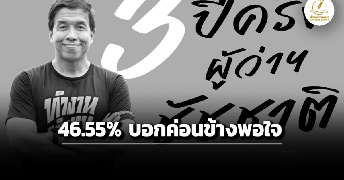สำนักข่าวอิศรา (www.isranew.org) รายงานว่าเมื่อวันที่ 7 ธ.ค. ศูนย์สำรวจความคิดเห็น “นิด้าโพล” สถาบันบัณฑิตพัฒนบริหารศาสตร์ (นิด้า) เปิดเผยผลการสำรวจเรื่อง “3 ปีครึ่ง ผู้ว่าฯ ชัชชาติ” ทำการสำรวจระหว่างวันที่ 25 พฤศจิกายน - 2 ธันวาคม 2568 จากประชาชนที่มีอายุ18 ปีขึ้นไป และมีสิทธิเลือกตั้งในกรุงเทพมหานคร ครอบคลุมพื้นที่ทั้ง 50 เขต กระจายทุกระดับการศึกษา อาชีพ และรายได้ รวมจำนวนทั้งสิ้น 2,000 หน่วยตัวอย่าง เกี่ยวกับการทำงานในรอบ 3 ปีครึ่ง ของผู้ว่าราชการกรุงเทพมหานคร ดร.ชัชชาติ สิทธิพันธุ์ การสำรวจอาศัยการสุ่มตัวอย่างโดยใช้ความน่าจะเป็นจากบัญชีรายชื่อฐานข้อมูลตัวอย่างหลัก (Master Sample) ของ “นิด้าโพล” สุ่มตัวอย่างแบบหลายขั้นตอน (Multi-stage Sampling) เก็บข้อมูลด้วยวิธีการสัมภาษณ์ทางโทรศัพท์ โดยกำหนดค่าความคลาดเคลื่อนไม่เกิน 0.05 ที่ระดับความเชื่อมั่นร้อยละ 97.0