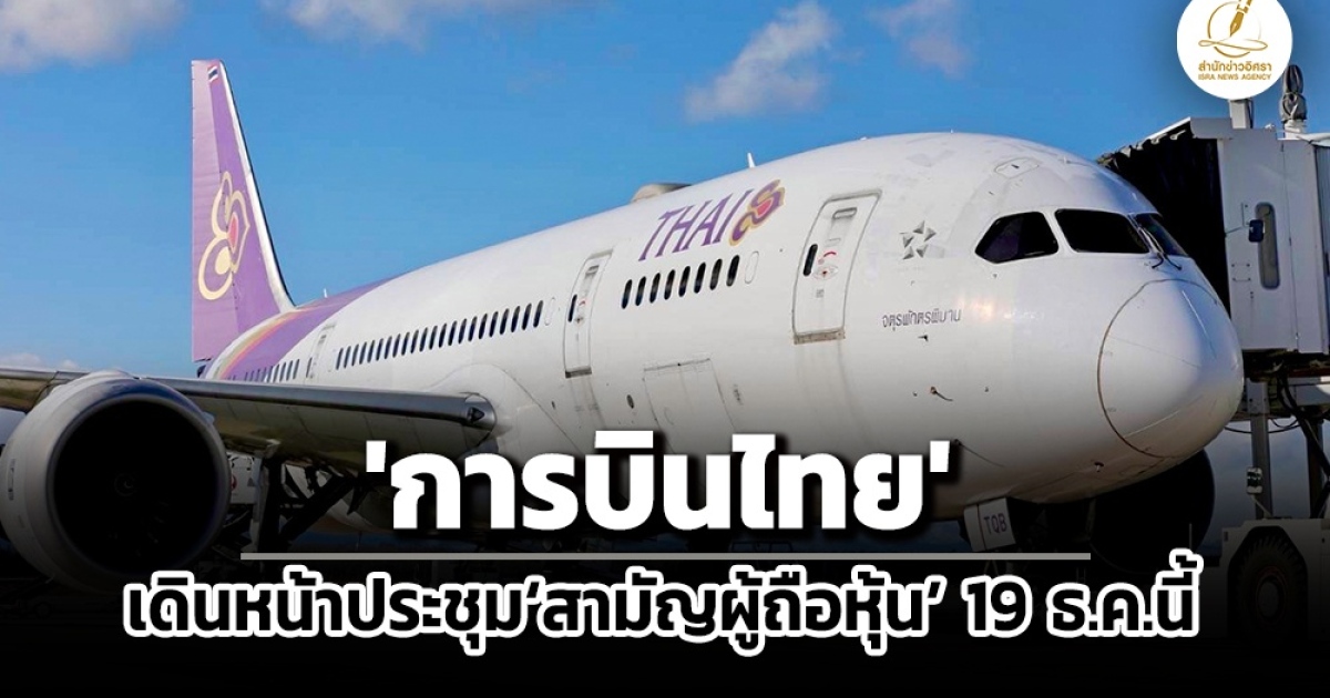 สำนักข่าวอิศรา (www.isranews.org) รายงานว่า เมื่อวันที่ 16 ธ.ค.ที่ผ่านมา บริษัท การบินไทย จำกัด (มหาชน) หรือ THAI แจ้งตลาดหลักทรัพย์ฯ เรื่อง ชี้แจงเกี่ยวกับการประชุมสามัญผู้ถือหุ้น ประจำปี 2568 ซึ่งจะจัดขึ้นในวันที่ 19 ธันวาคม 2568 โดยระบุว่า ตามที่บริษัท การบินไทย จำกัด (มหาชน) (“บริษัทฯ”) จะจัดให้มีการประชุมสามัญผู้ถือหุ้น ประจำปี 2568 ในวันที่ 19 ธันวาคม 2568