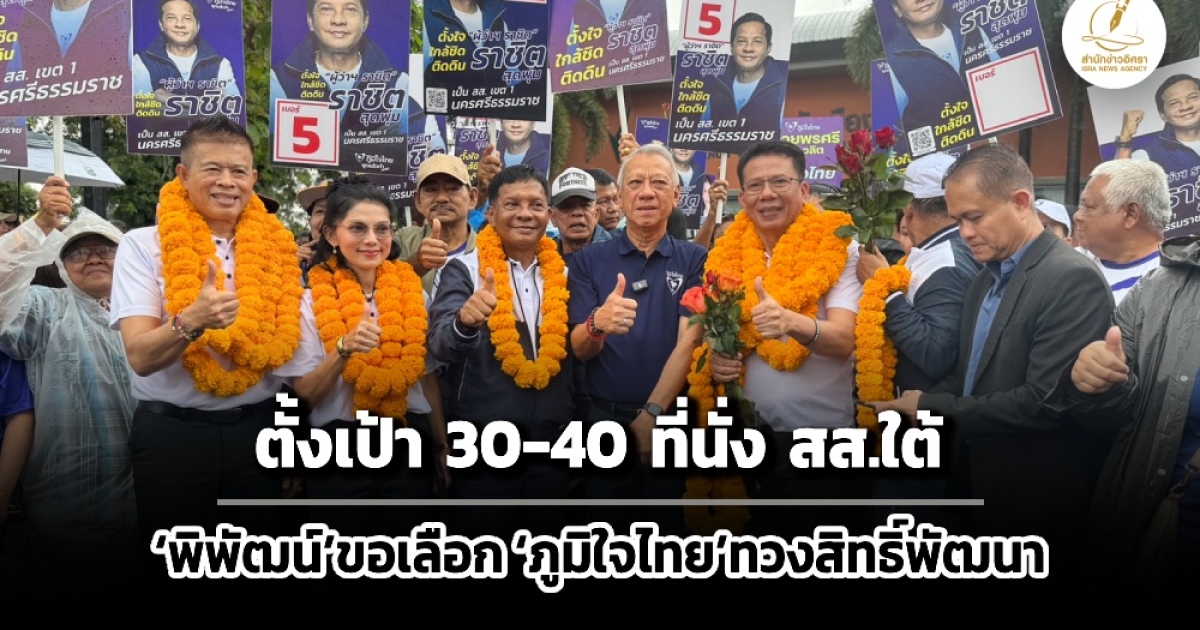 ‘พิพัฒน์’ลงนครศรีฯ ตั้งเป้าสส.ภูมิใจไทยภาคใต้ 30-40 ที่นั่ง ขอโอกาสคนใต้ทวงสิทธิ์การพัฒนาที่ถูกละเลยมานาน